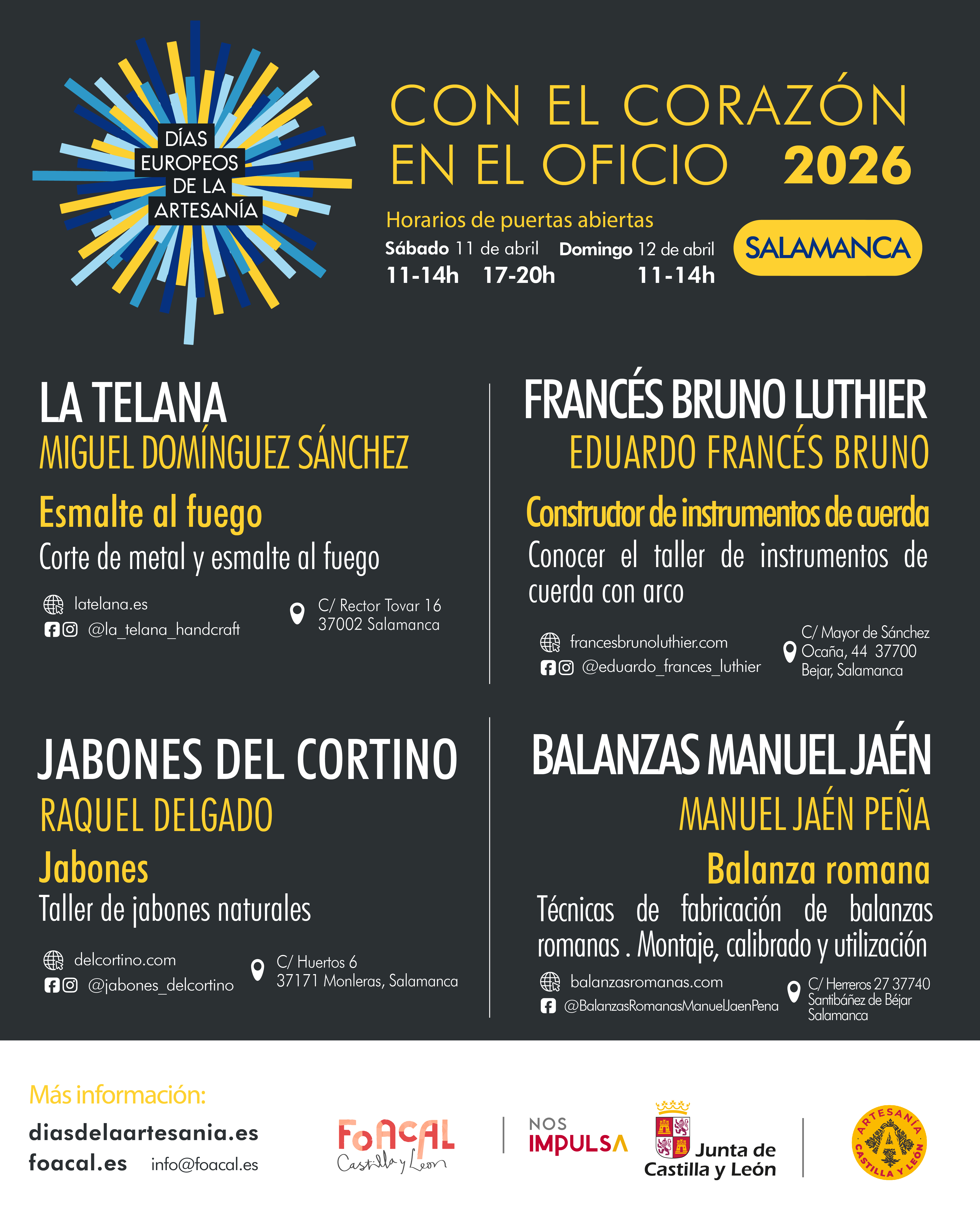 4 TALLERES ARTESANOS DE LA PROVINCIA DE SALAMANCA ABREN SU PUERTAS EL SÁBADO 11 Y DOMINGO 12 DE ABRIL Multisectorial Fotos Documentos adjuntos EDUARDO FRÁNCES BRUNO