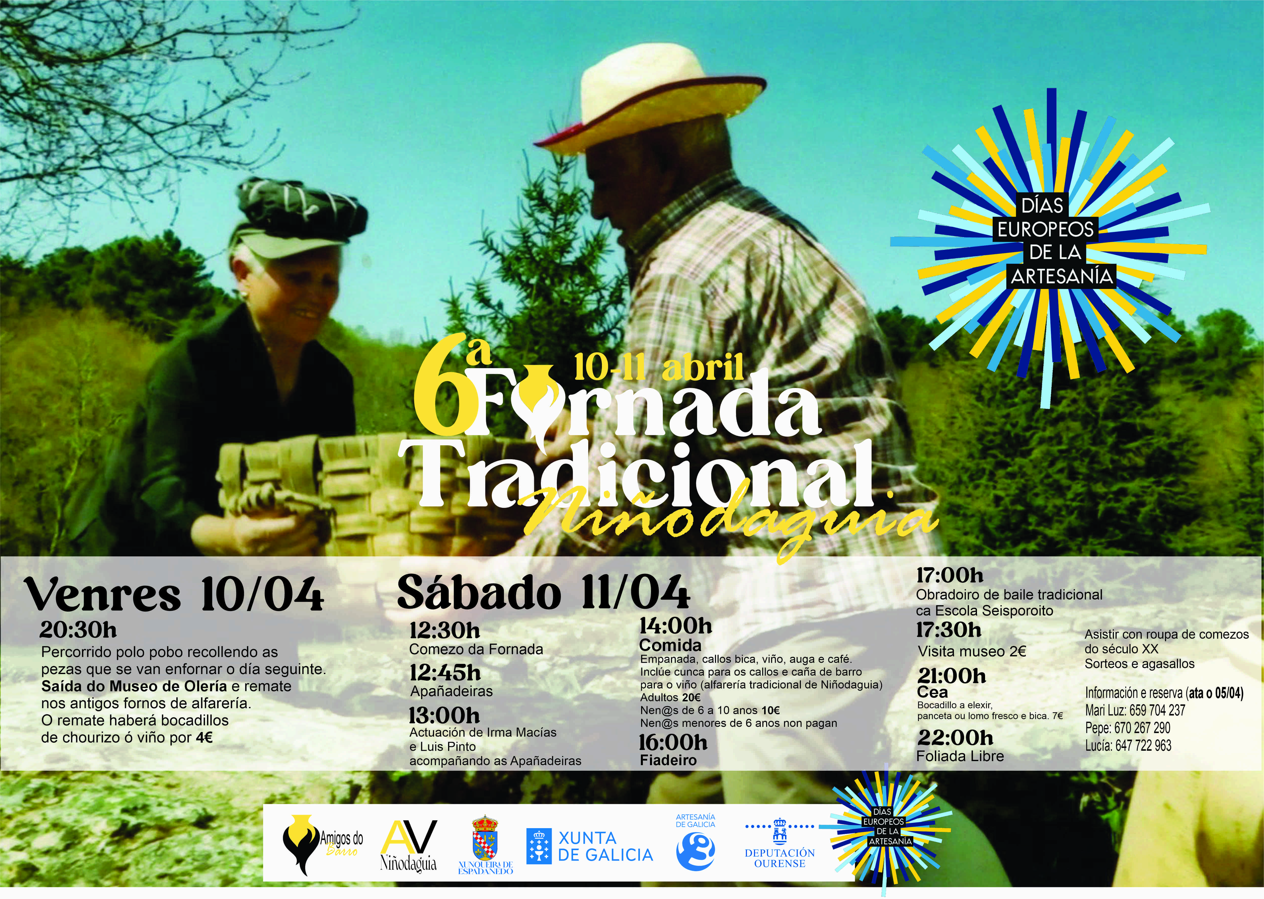 El sábado 11 de abril a las 12:30 se inaugurará la 6 Fornada Tradicional de Niñodaguia, una fiesta de interés etnográfico que se celebra desde el año 2019 gracias a los vecinos/as de Niñodaguia apoyados por el Concello de Xunqueira de Espadanedo, Artesanía de Galicia y la Diputación de Ourense. Desde el año 2023 la fiesta se enmarca en “Los días europeos de la artesanía”.