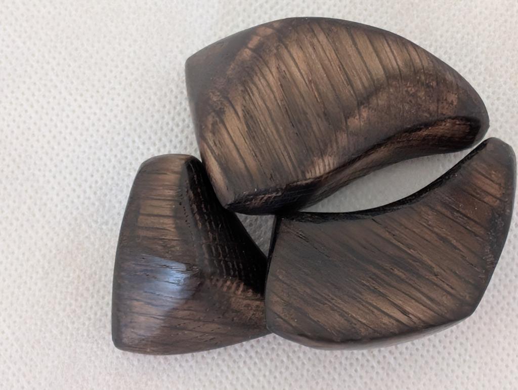 A través de la técnica del quemado, la reacción de oxidación con acetato de hierro y el acabado final con aceite, el público explora cómo alterar las propiedades visuales y táctiles de la madera.