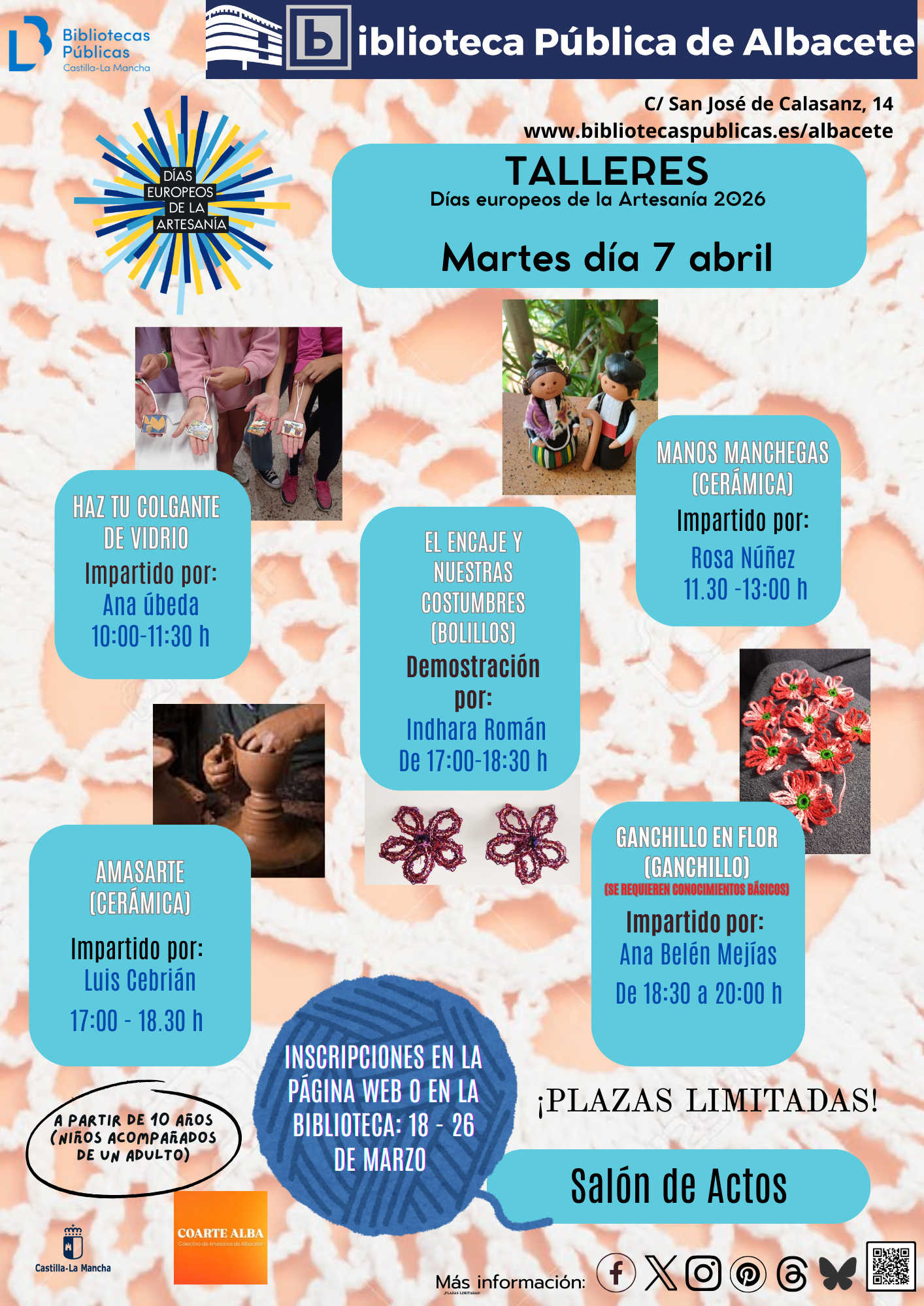 Dentro de las actividades que organiza la Asociación de Albacete en colaboración con la Biblioteca Pública del Estado, esta el taller de vidrio. En este taller participativo (máximo 10 participantes a partir de 10 años, menores acompañados de un adulto) se dará a conocer el ofico de vidriero. mostrando diferentes vidros, colores y texturas, herramientas y materias primas  que usamos para hacer vidrieras, lámparas, objetos decorativos etc.