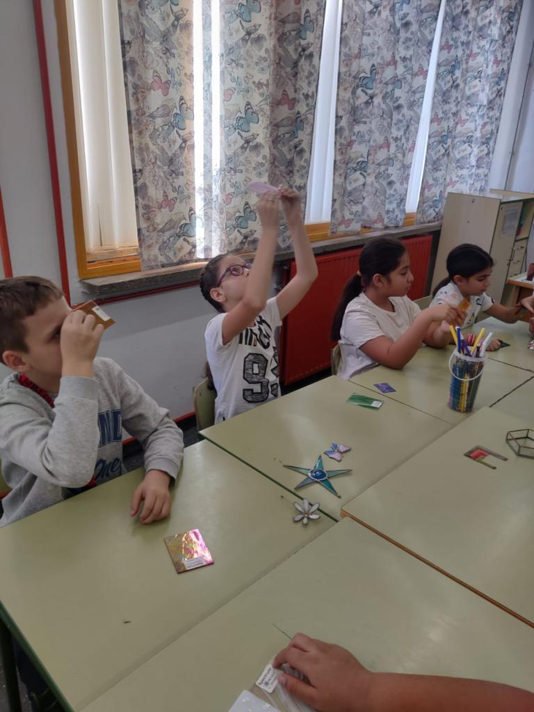 cada participante hará un colgante con dos vidrios y ccinta de cobre con un collage hecho por ellos entre medias, se soldará una anilla y se pondrá un cordón.