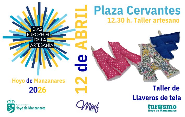 El domingo 12 de abril la Plaza de Cervantes de Hoyo de Manzanares acogerá, a partir de las 12:30h, talleres artesanos gratuitos que permitirán a los visitantes más pequeños participar de manera práctica en la creación de piezas únicas.