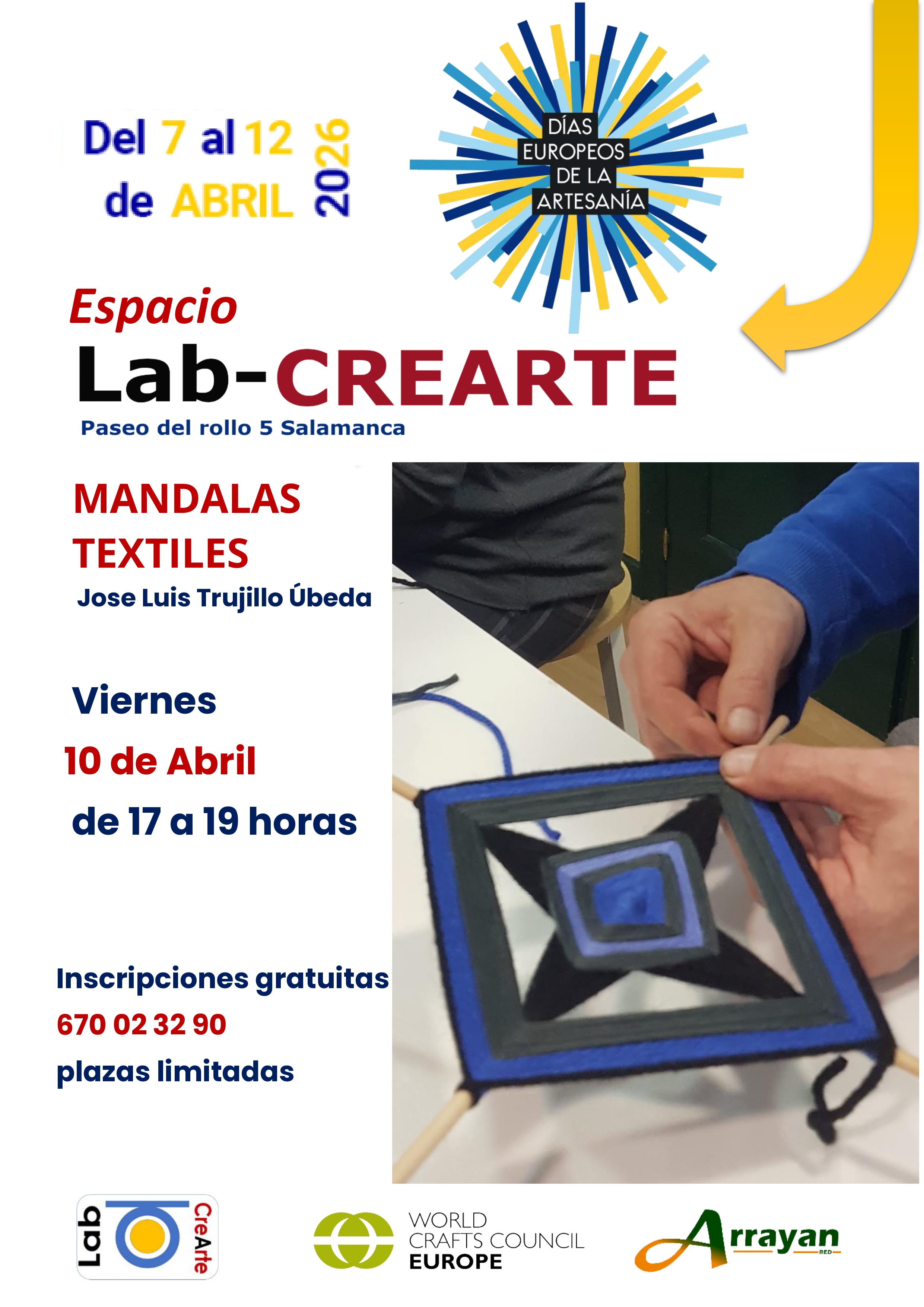 Durante toda la "Semana Europea para la Artesanía", el Lab-CREARTE de Red Arrayán ofrece una "Exposición de Tapices de Alto Lizo" y diferentes talleres vinculados a la Artesanía Textil en el nuevo espacio del Paseo del Rollo, 5 de la ciudad de Salamanca