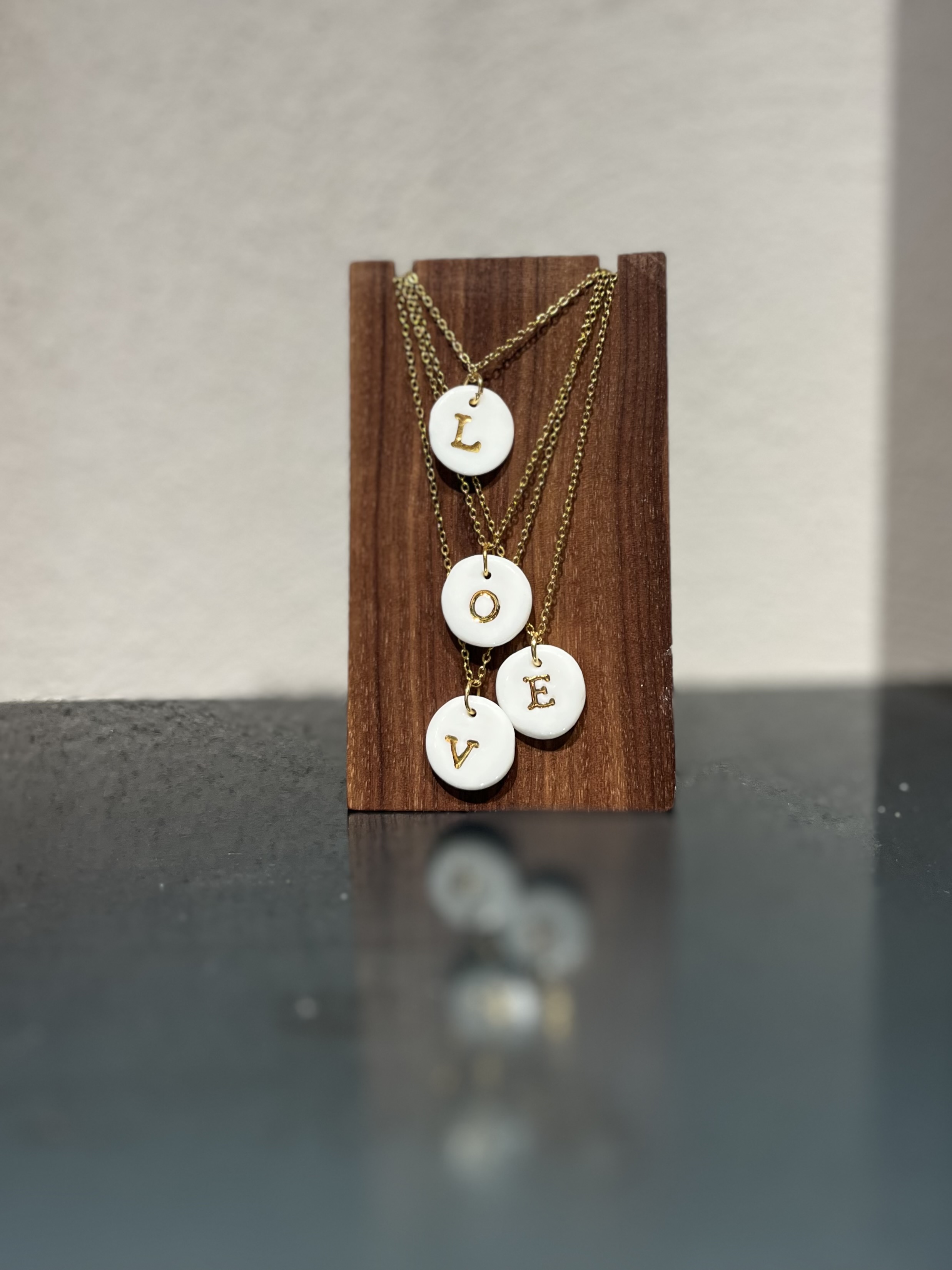Durante aproximadamente 30 minutos, descubrirán cómo se trabaja la porcelana desde el modelado manual hasta los primeros pasos del acabado. Aprenderán a dar forma a su letra, jugar con la textura y comprender el proceso que hay detrás de una pieza de joyería en porcelana.