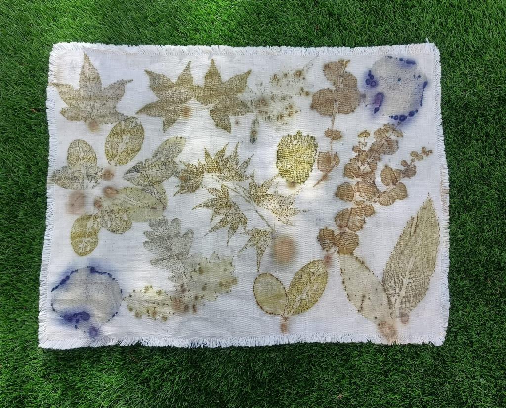 Realizaremos la estampación con la técnica de ecoprint y te guiaremos para que elijas las hojas y las flores que habremos recolectado previamente, para que estén a disposición y puedas crear un diseño personalizado a tu gusto.