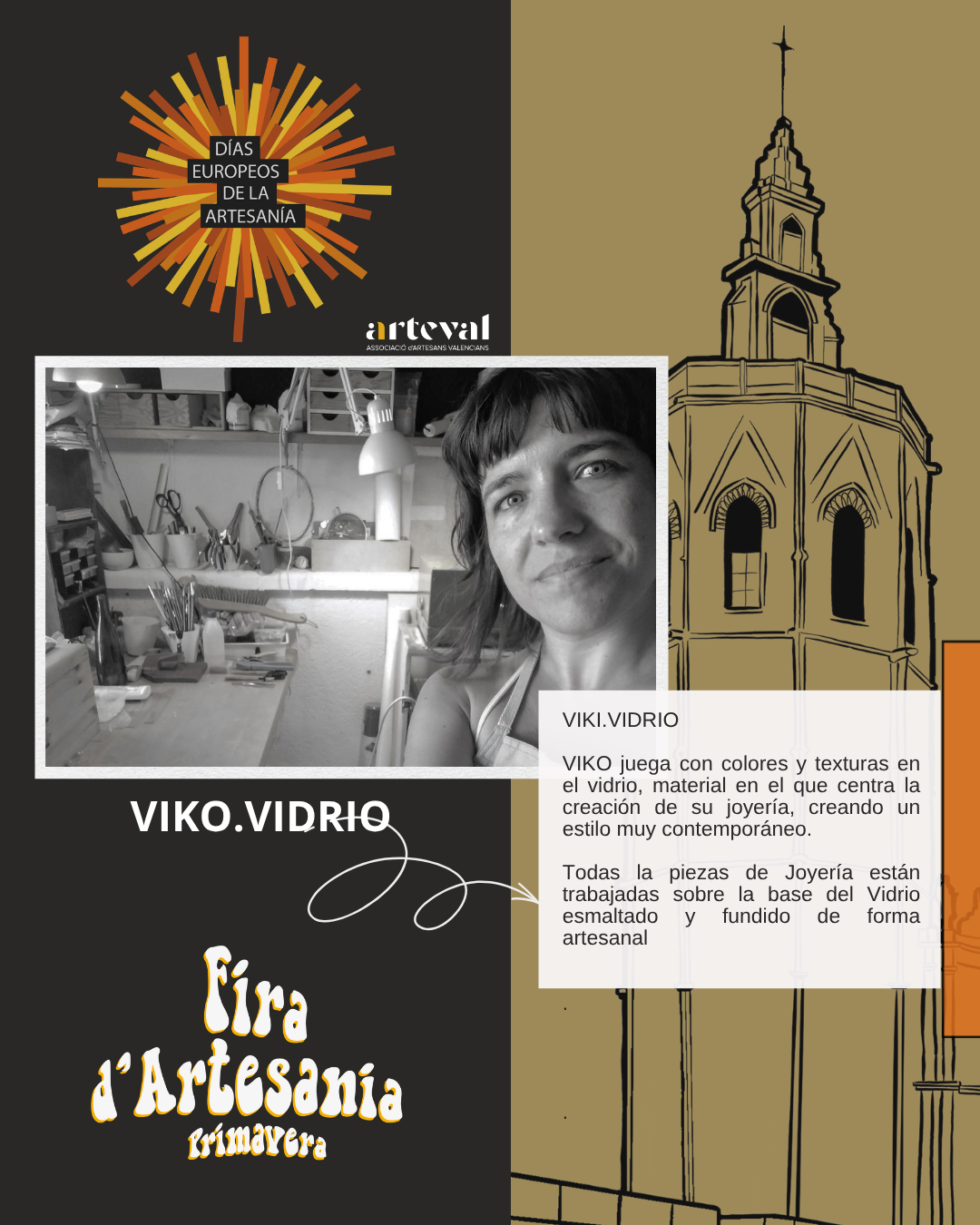 Del 27 de marzo al 12 de abril, ARTEVAL celebra una nueva edición de la Feria de Artesanía de Primavera de València en la emblemática Plaza de La Reina, uno de los espacios más representativos y visitados de la ciudad, un entorno histórico de reconocido valor cultural y patrimonial, en este contexto del 6 al 12 de abril se desarrollará la programación especial de los Días Europeos de la Artesanía.