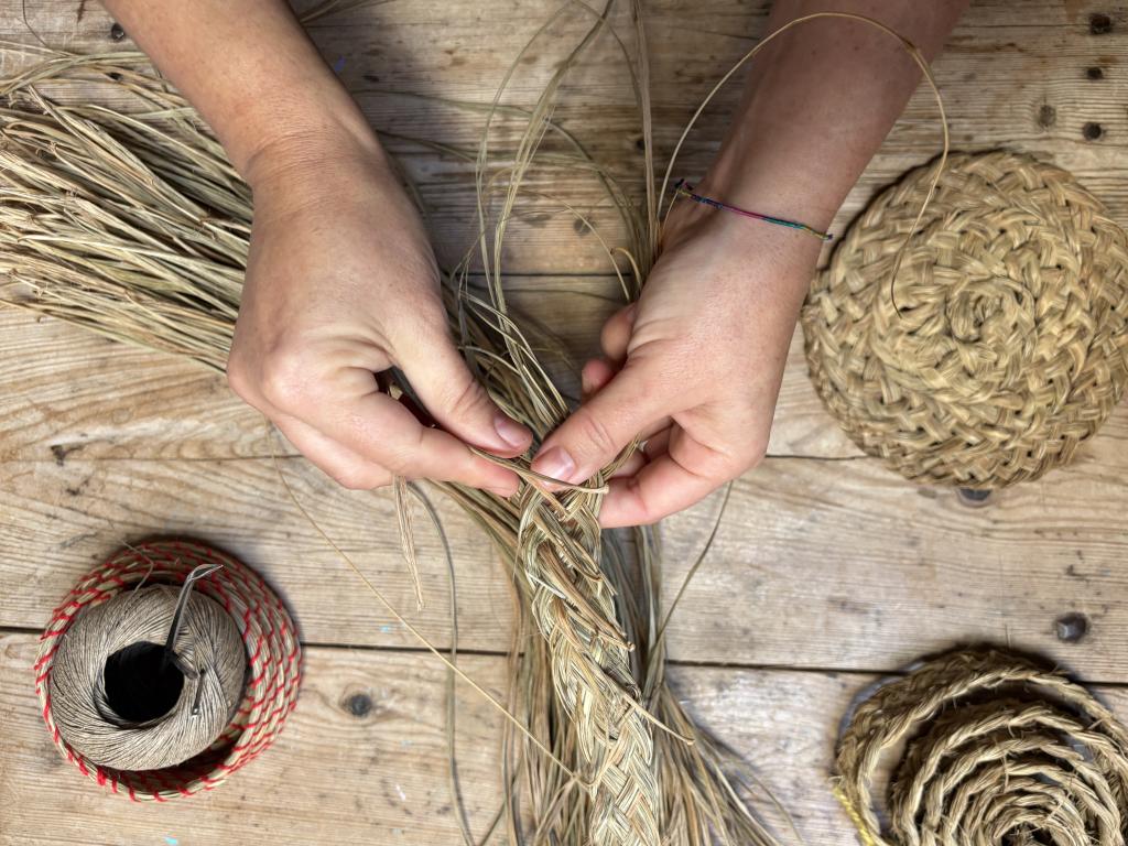 • Limpiarás y asentarás tu pleita para coserla y transformarla en un pequeño cestito.
