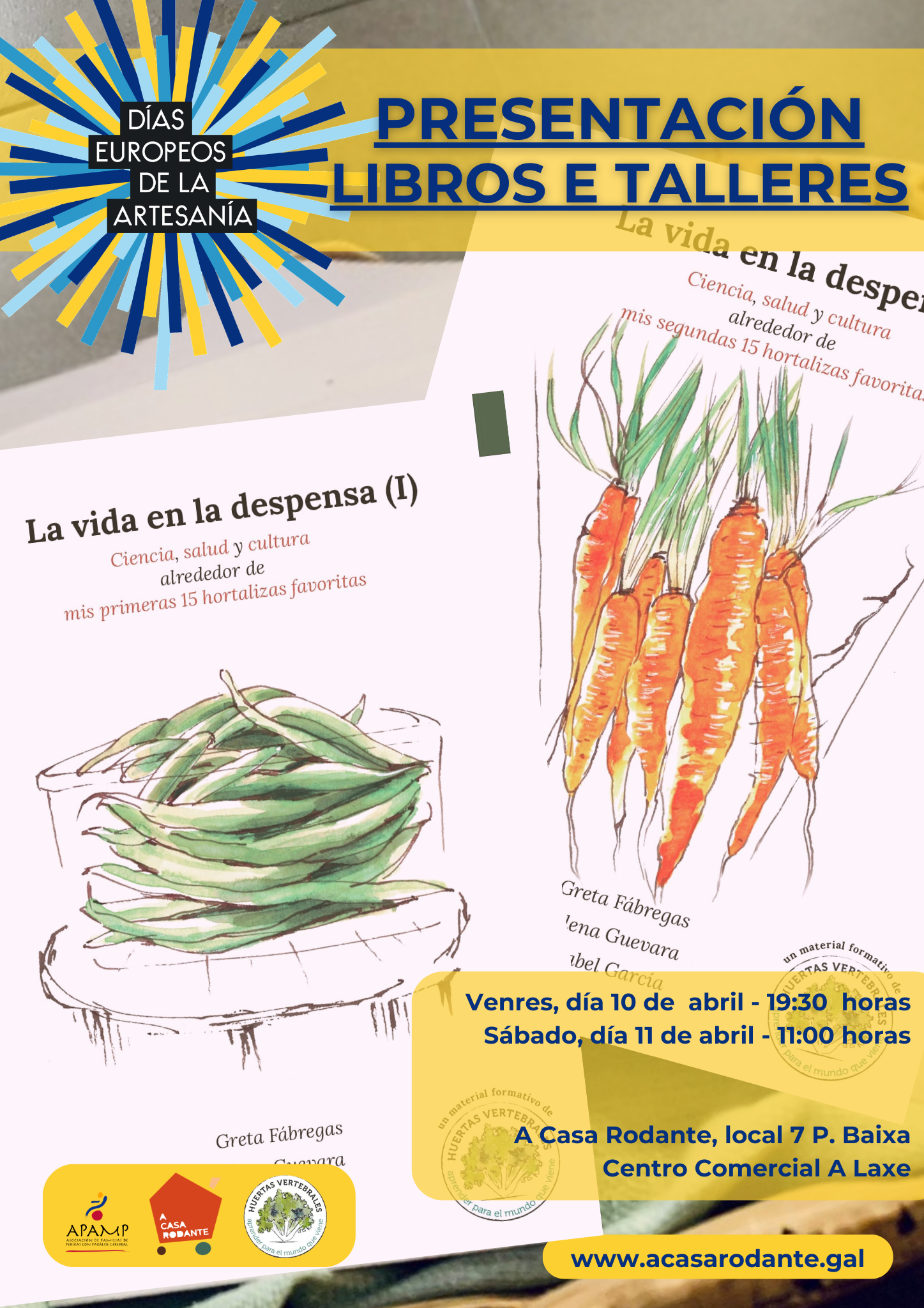 O encontro terá lugar en dúas sesións -a tarde do venres e a mañá do sábado- como peche aos "Días Europeos de la Artesanía", unhas xornadas que se desenvolverán dende o 07 ao 12 de abril de 2026, no noso Espazo Rodante (local nº7, planta baixa do Centro Comercial A Laxe)