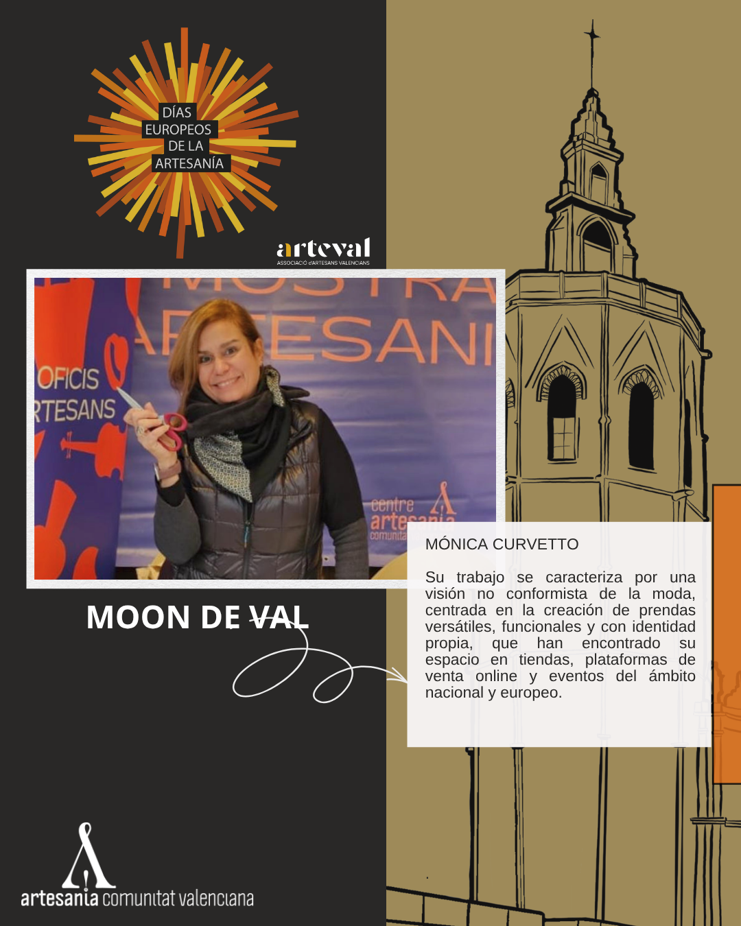 Del 27 de marzo al 12 de abril, ARTEVAL celebra una nueva edición de la Feria de Artesanía de Primavera de València en la emblemática Plaza de La Reina, uno de los espacios más representativos y visitados de la ciudad, un entorno histórico de reconocido valor cultural y patrimonial, en este contexto del 6 al 12 de abril se desarrollará la programación especial de los Días Europeos de la Artesanía.