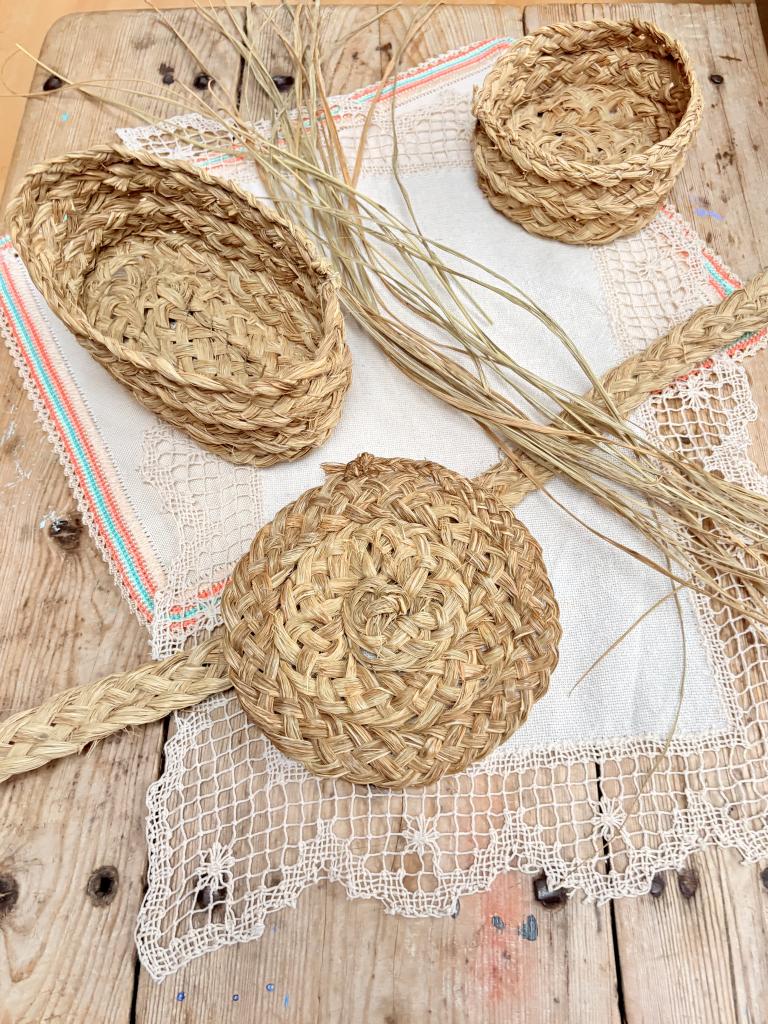 - Limpiarás y asentarás tu pleita para coserla y transformarla en un pequeño cestito.