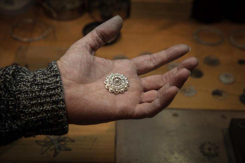 La pieza más representativa de la joyería popular Salmantina es el botón *charro. Al igual que todas las joyas de filigrana, se elabora a partir de un hilo con el que se hace el armazón de la pieza. Las espirales realizadas con dos hilos más finos y retorcidos rellenan los huecos de la estructura creando así la superficie a la que se le aplican los adornos finales.