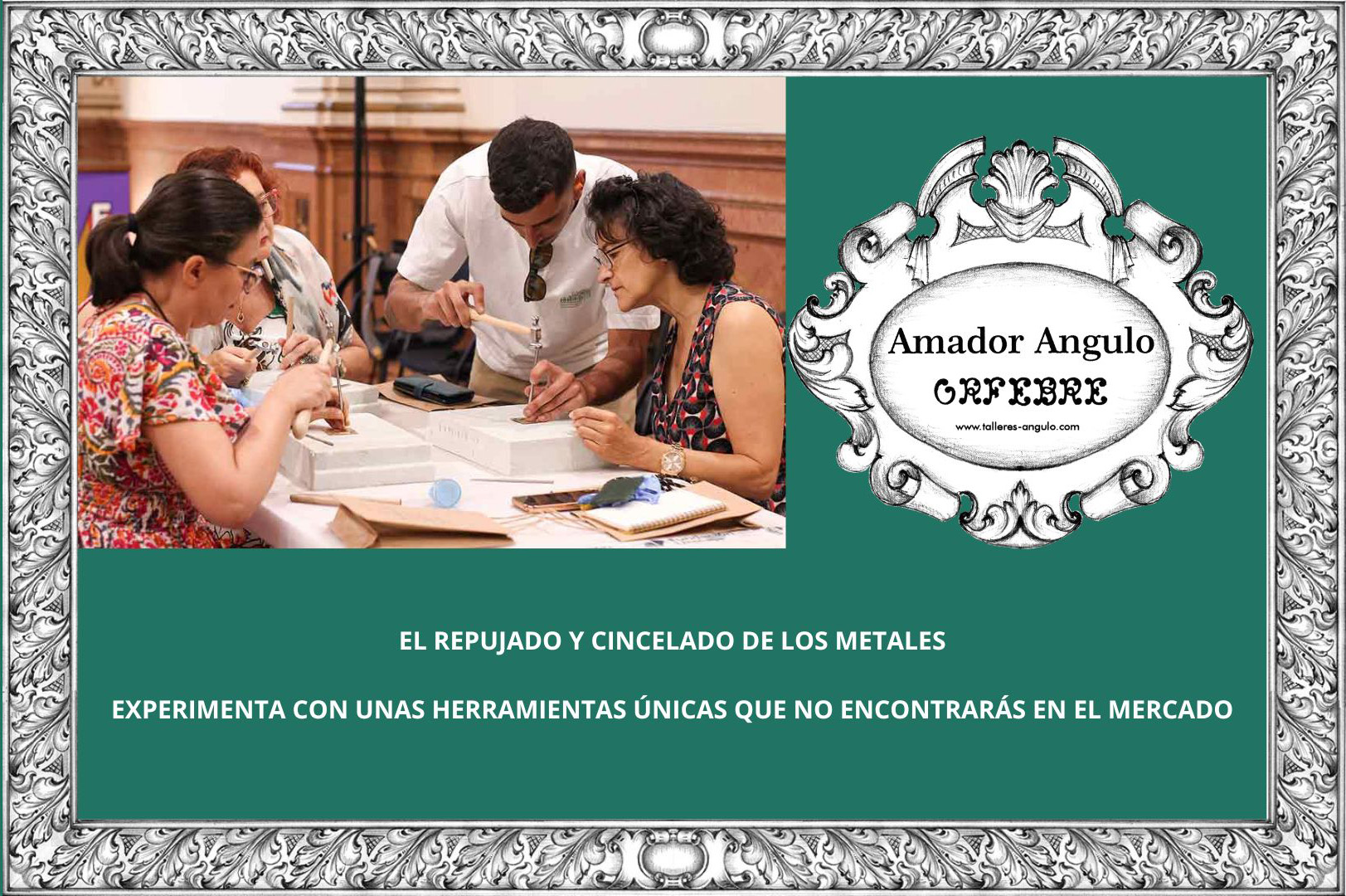 La actividad consistirá en mostrar las herramientas básicas en el trabajo artesanal del repujado y cincelado de los metales y ofrecer la posibilidad de utilizarlas en el mismo evento o en actividades experienciales programadas a futuro en mi propio taller, con el objetivo de obtener bajorrelieves sobre lámina de metal (latón) que finalmente se puedan convertir en un complemento o recuerdo personal.
