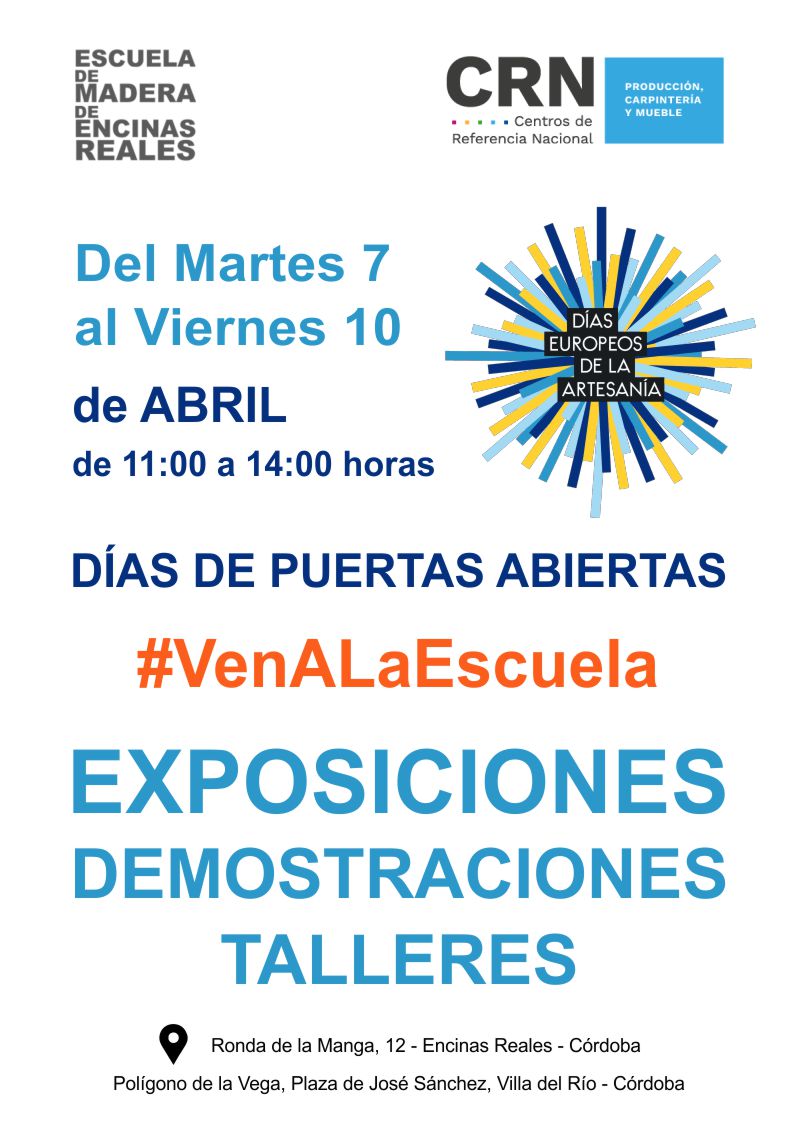 Durante estas jornadas, el público podrá visitar libremente las instalaciones de la escuela, recorriendo los distintos espacios de trabajo donde se llevan a cabo las actividades formativas. Los asistentes tendrán la oportunidad de conocer los talleres y aulas, las herramientas y los materiales utilizados en disciplinas como la carpintería, el acabado de madera, el mecanizado o el diseño.