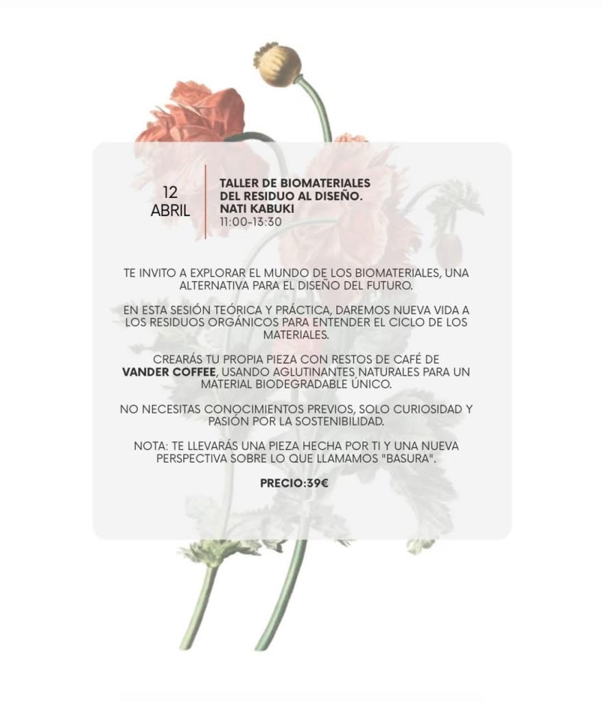 Se podrá crear una pieza propia de forma artesanal con restos del café de Vander Coffe, usando aglutinantes naturales para un material biodegradable único. No se necesitan conocimientos previos, solo curiosidad y pasión por la sostenibilidad y la artesanía.