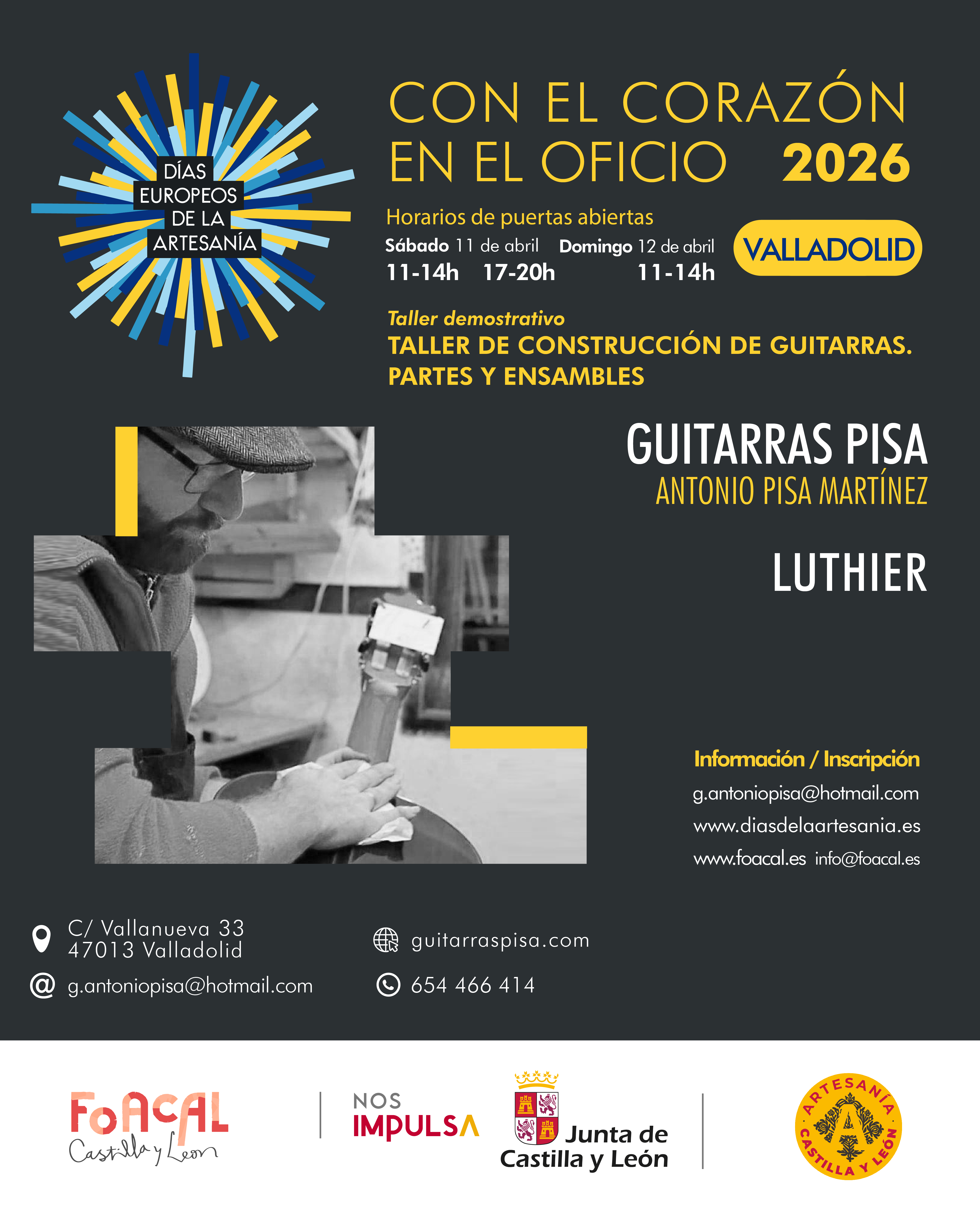 Te invitamos a visitar el taller construcción de guitarras y adentrarte en el oficio artesano de la luthería, un trabajo minucioso en el que tradición, técnica y sensibilidad se unen para dar vida a cada guitarra.