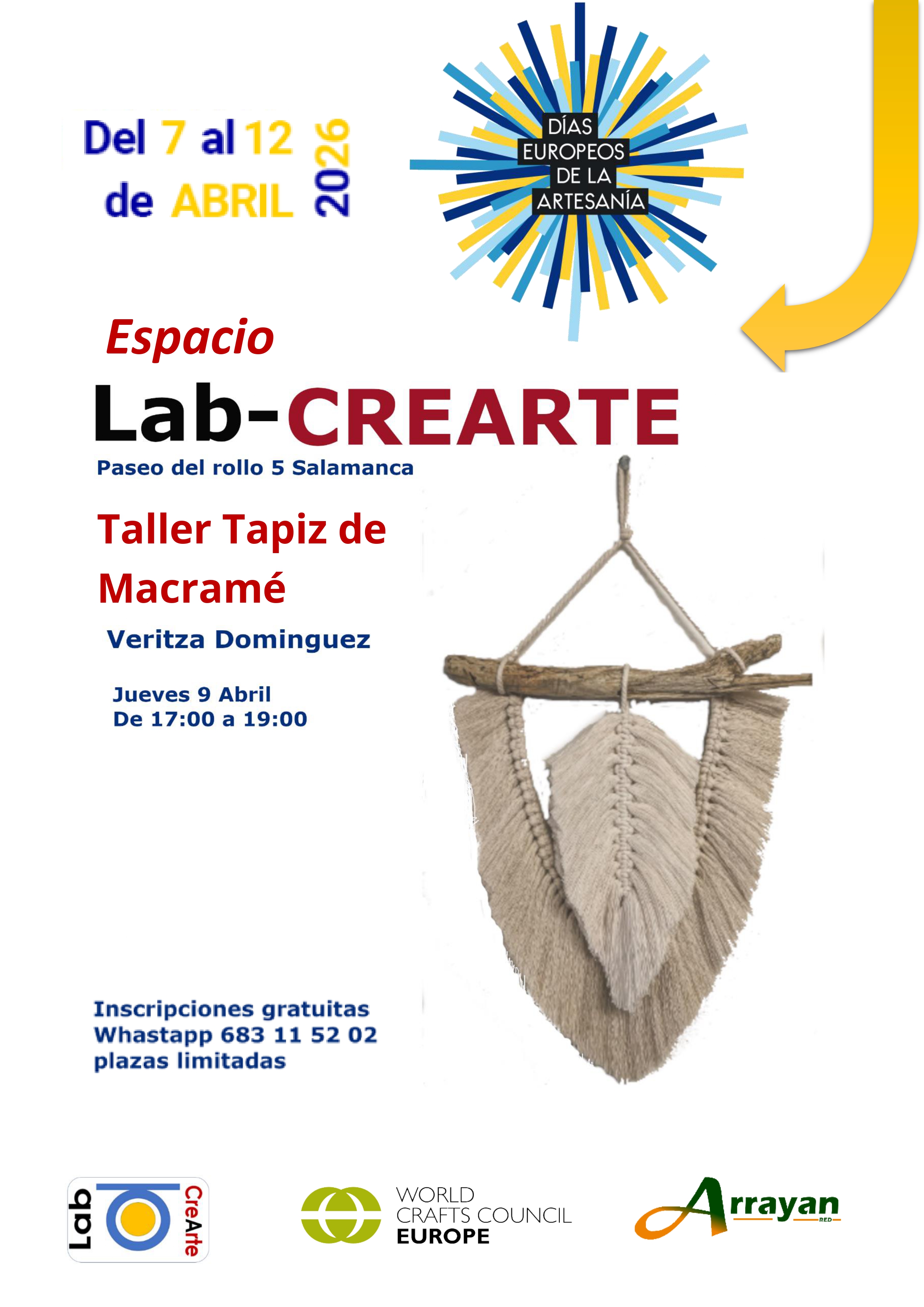 Durante toda la semana europea para la artesanía, el Lab-CREARTE de Red Arrayán ofrece una Exposición de Tapices y diferentes talleres vinculados a la "Artesanía Textil" en el nuevo espacio del Paseo del Rollo, 5 de la ciudad de Salamanca